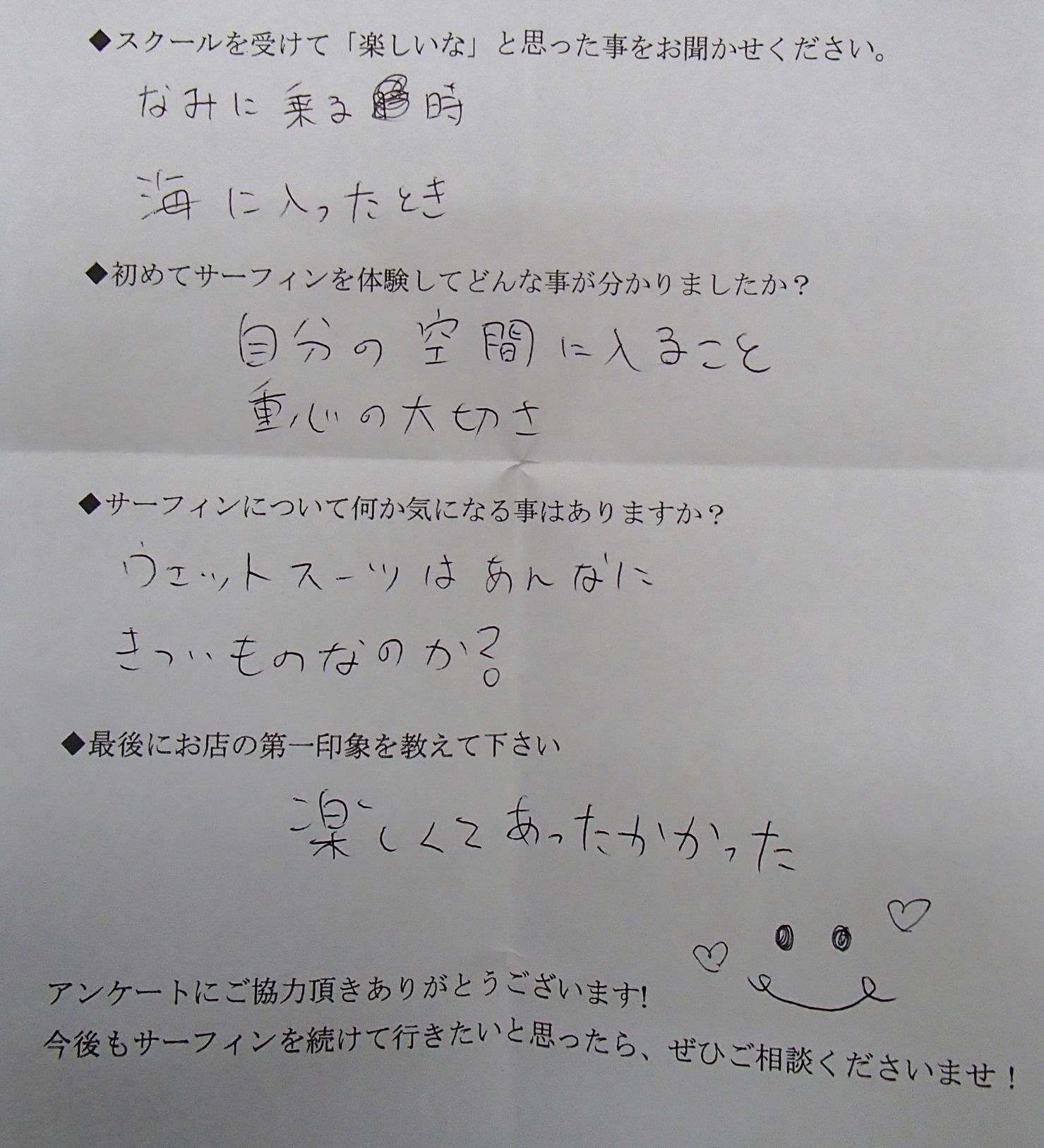 初めてサーフィンを体験してどんな事が分かりましたか?