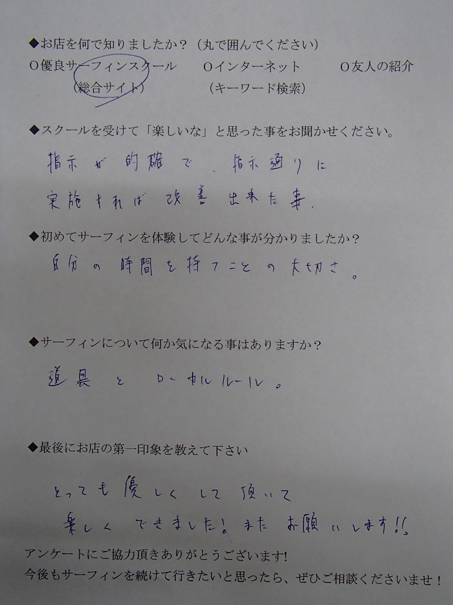 サーフィンスクール お客様の声 vol.021
