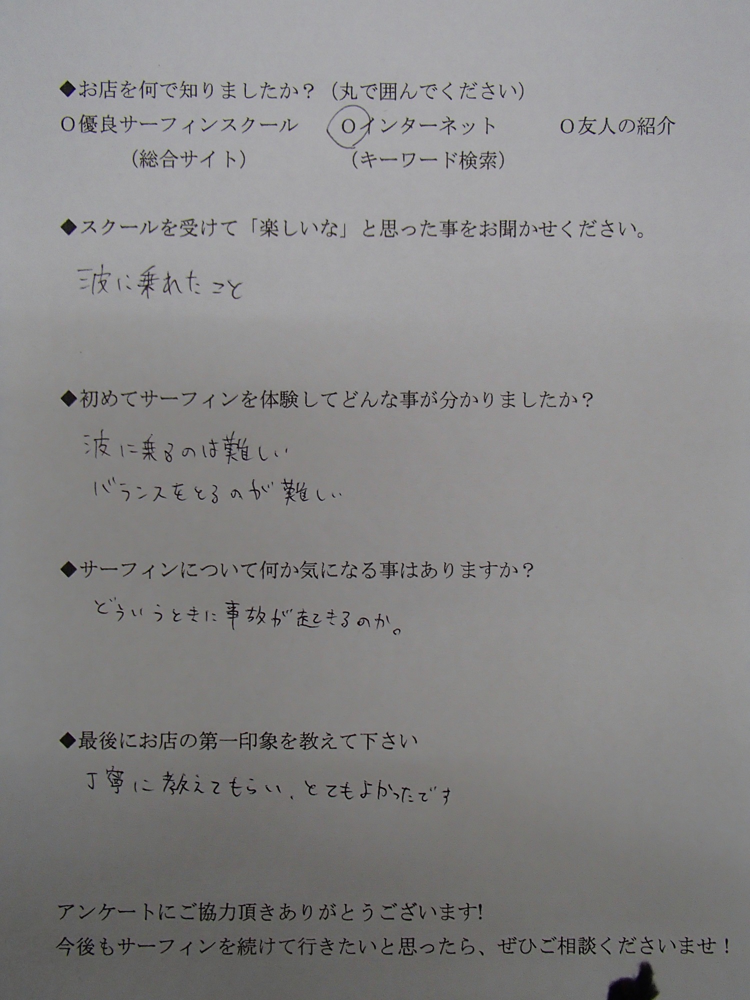 初めてサーフィンを体験してどんな事が分かりましたか?