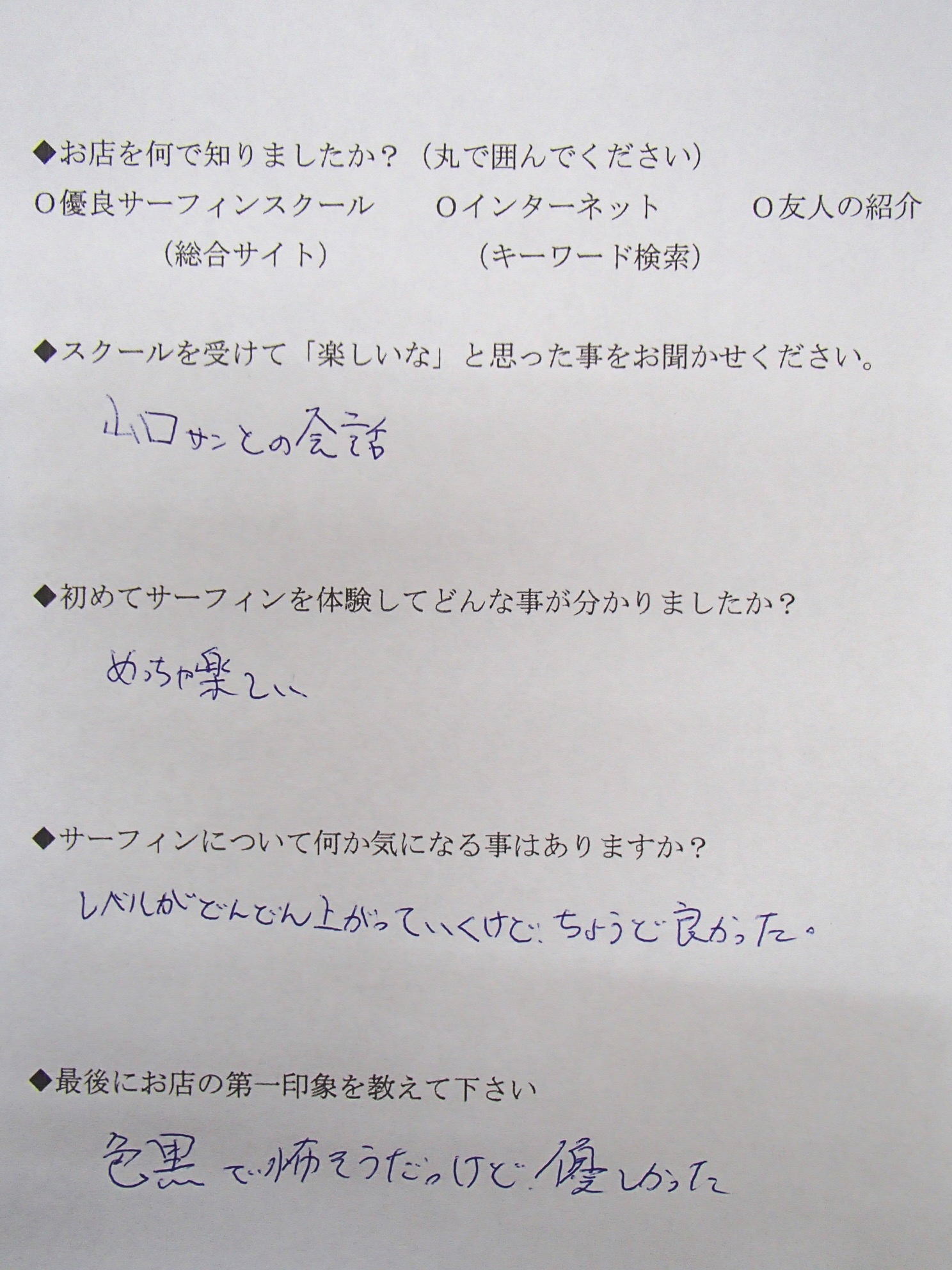 サーフィンスクール お客様の声 vol.030