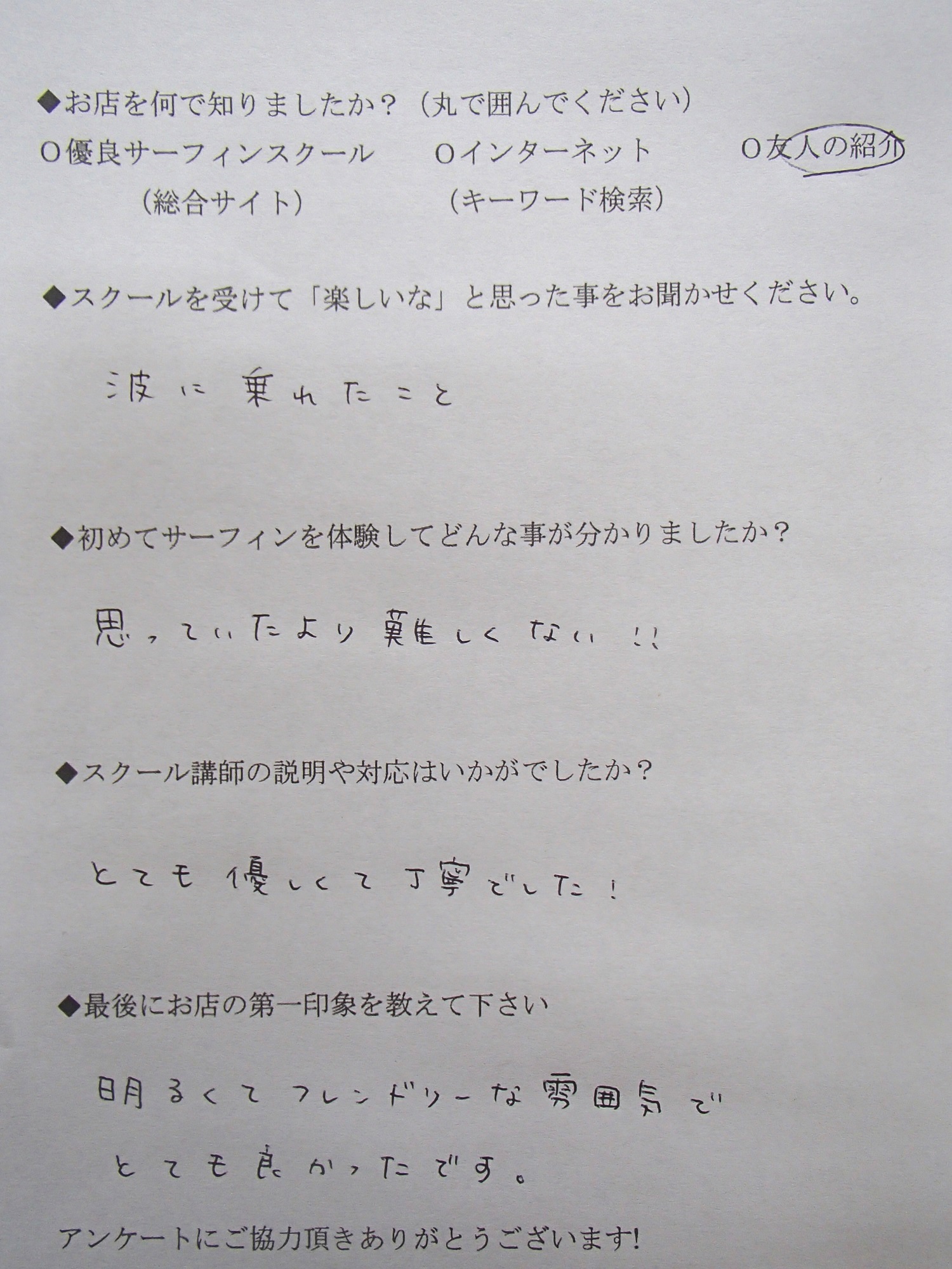 初めてサーフィンを体験してどんな事が分かりましたか?