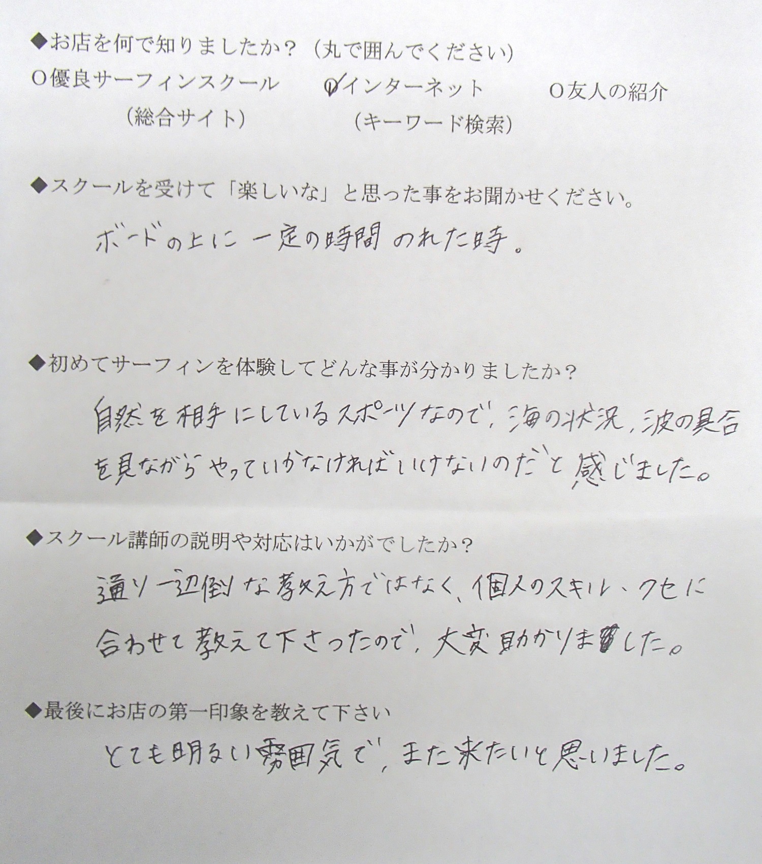 サーフィンスクール お客様の声 vol.034