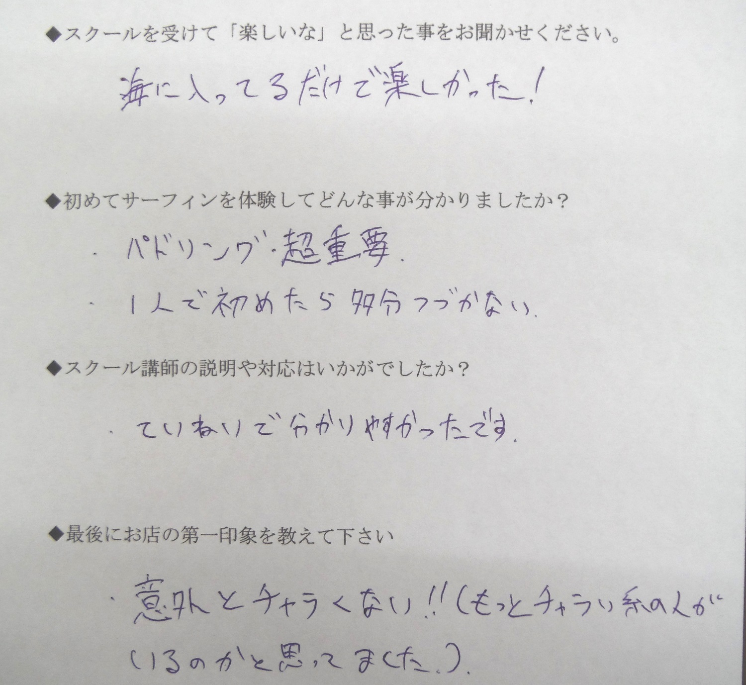 初めてサーフィンを体験してどんな事が分かりましたか?