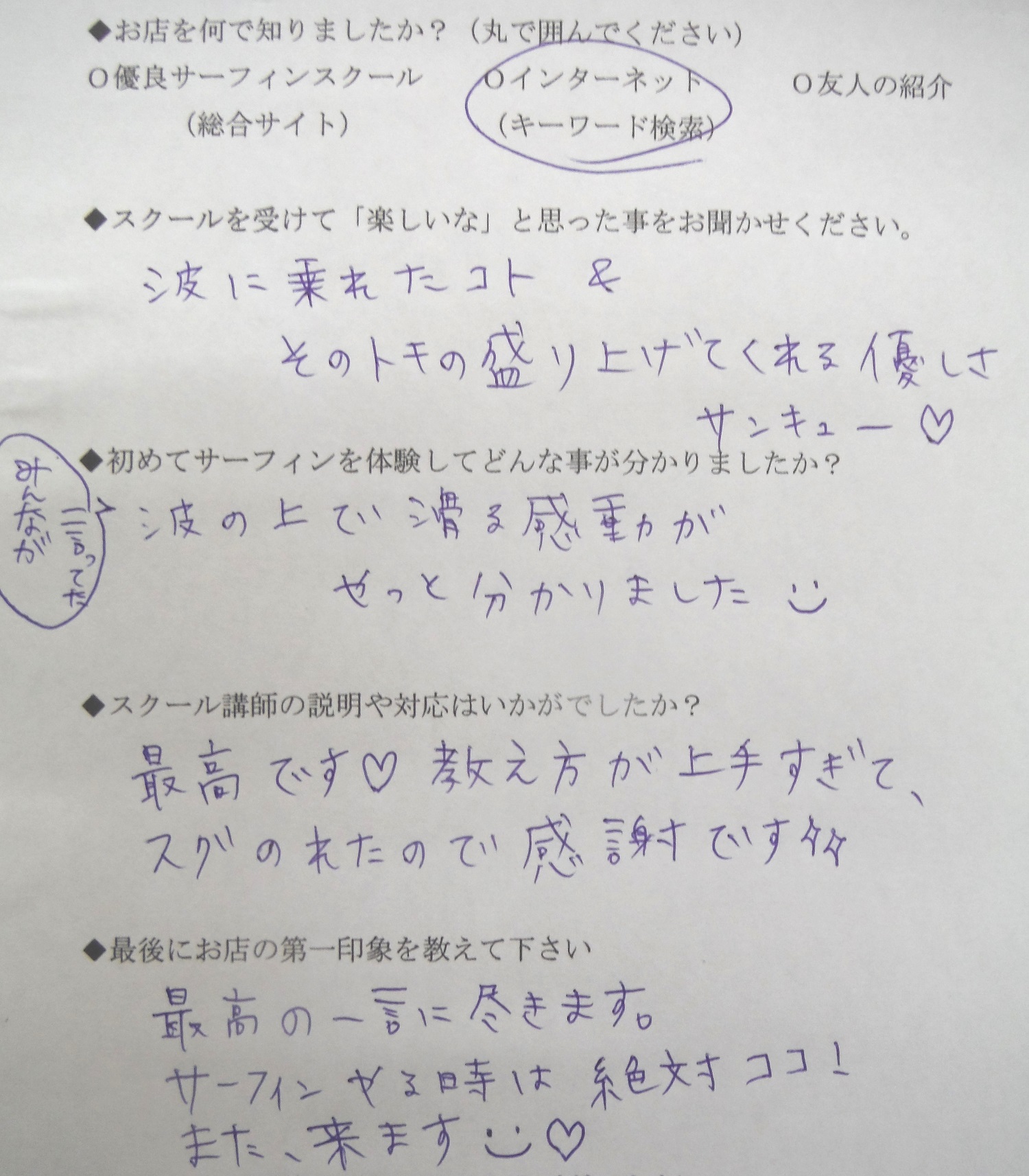 ・波に乗れたコト&そのトキの盛り上げてくれる優しさサンキュー♡