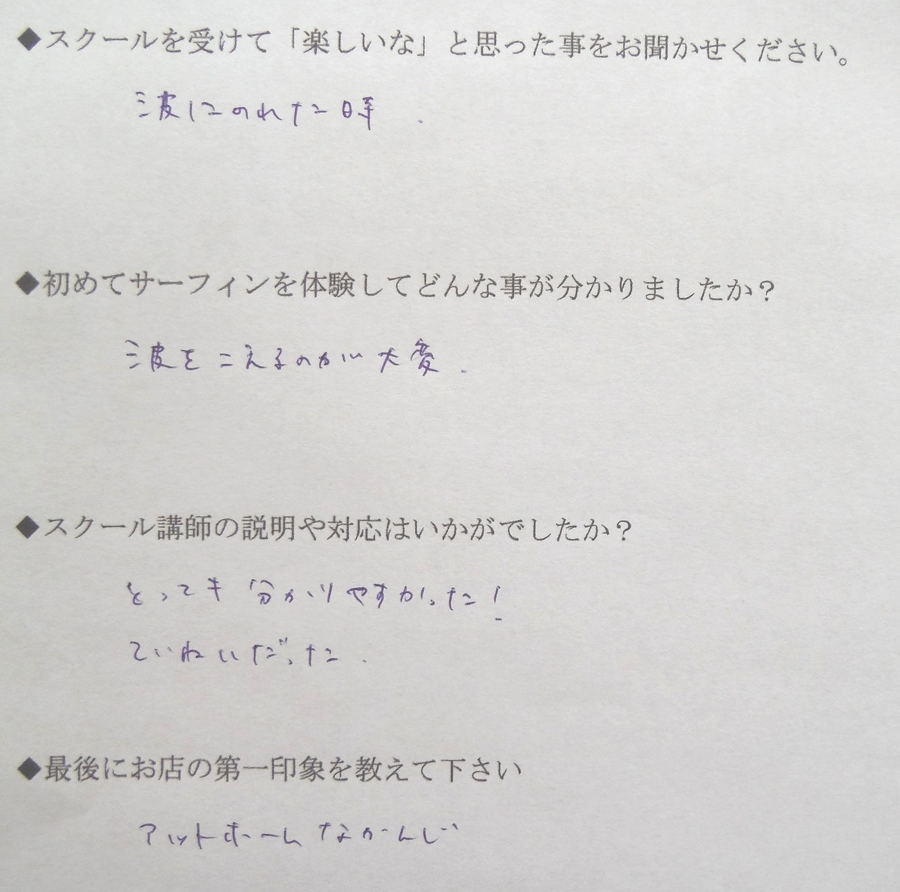 サーフィンスクール お客様の声 vol.097