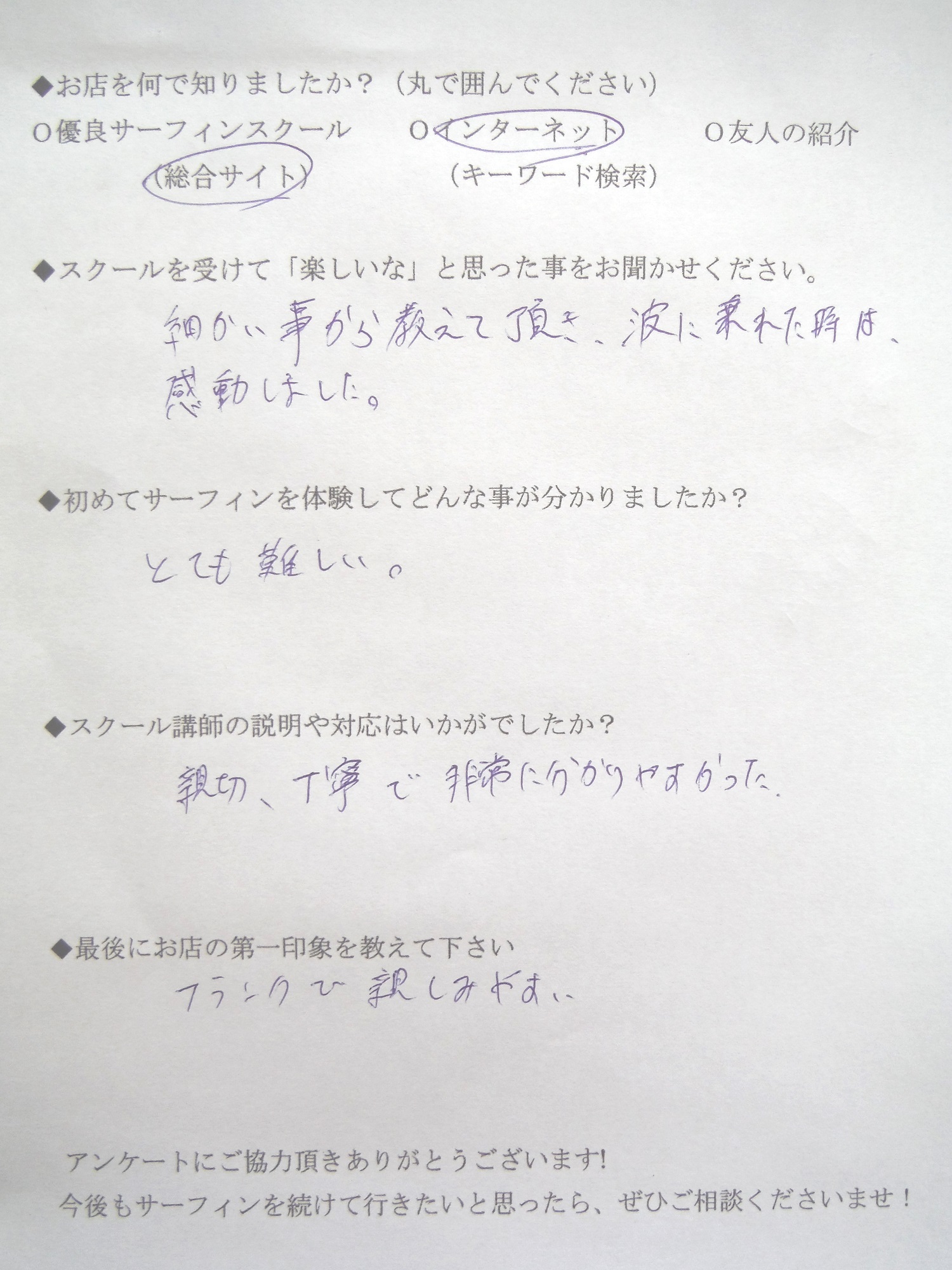 サーフィンスクール お客様の声 vol.102