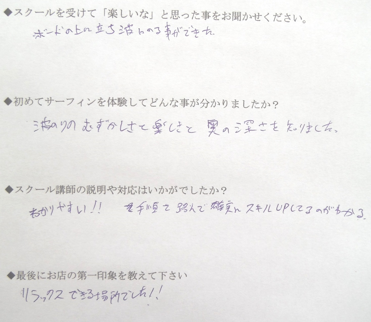 サーフィンスクール お客様の声 vol.105