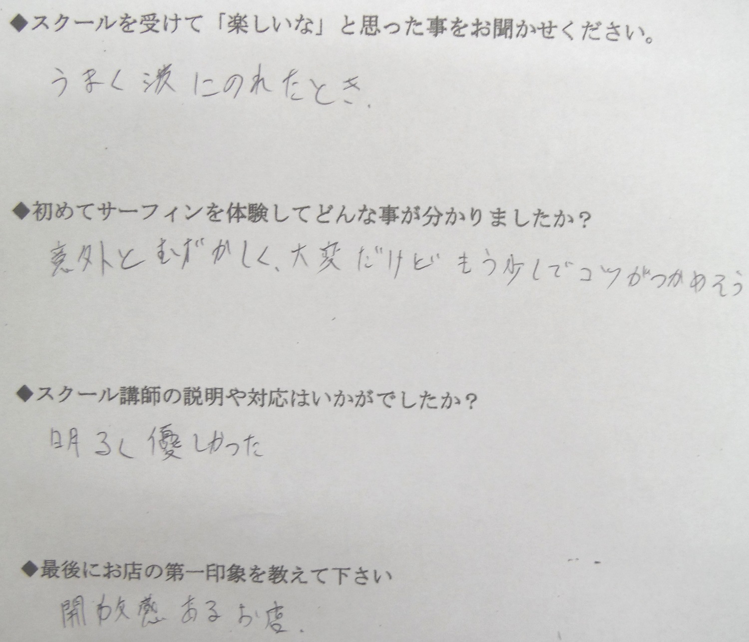 初めてサーフィンを体験してどんな事が分かりましたか?