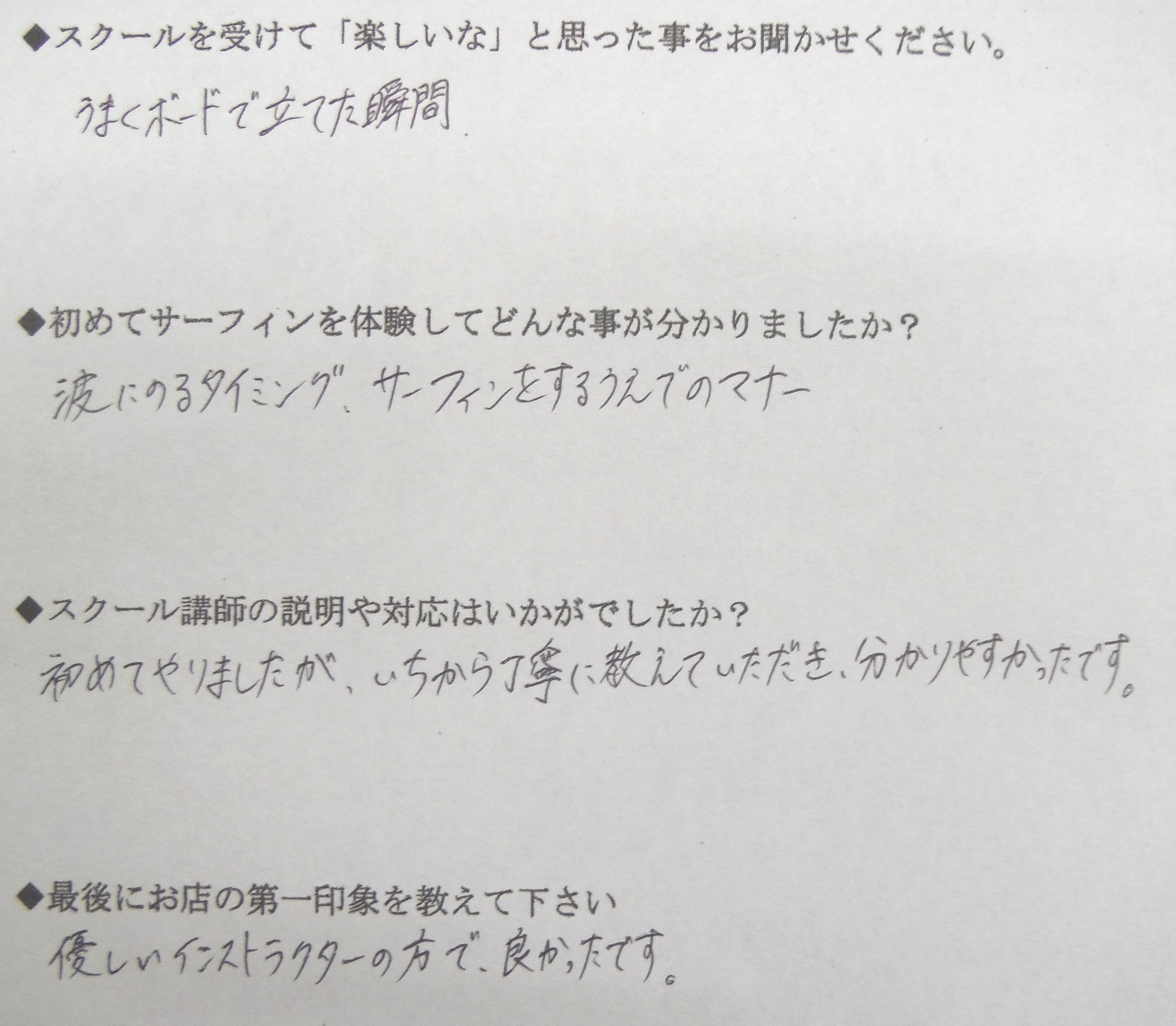 サーフィンスクール お客様の声 vol.108
