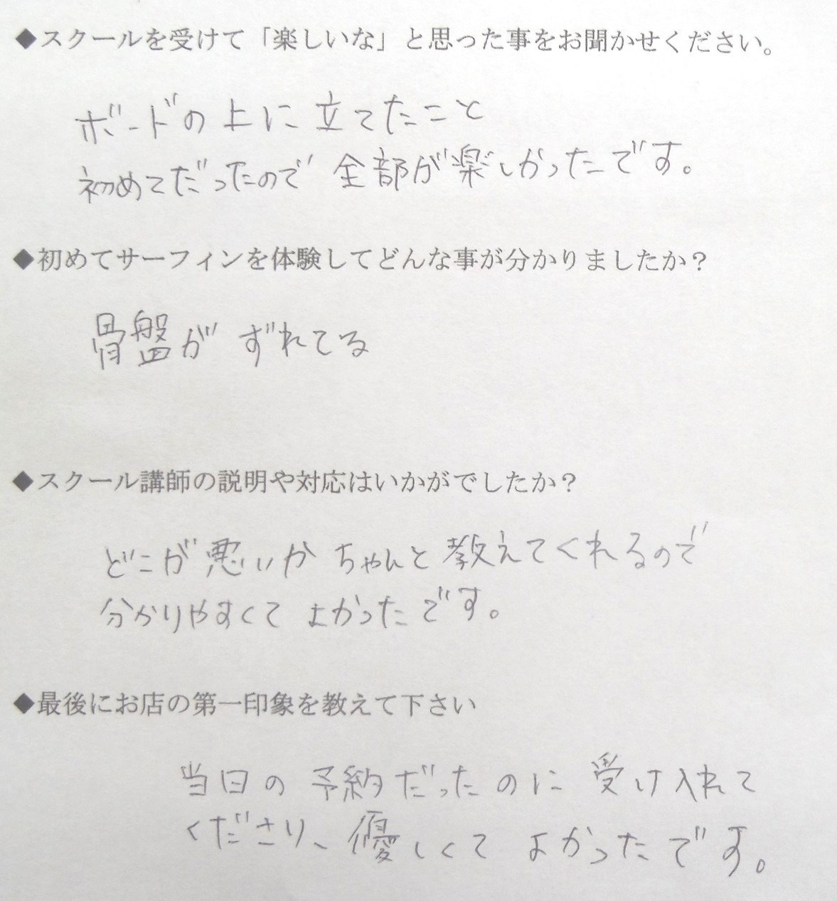 初めてサーフィンを体験してどんな事が分かりましたか?