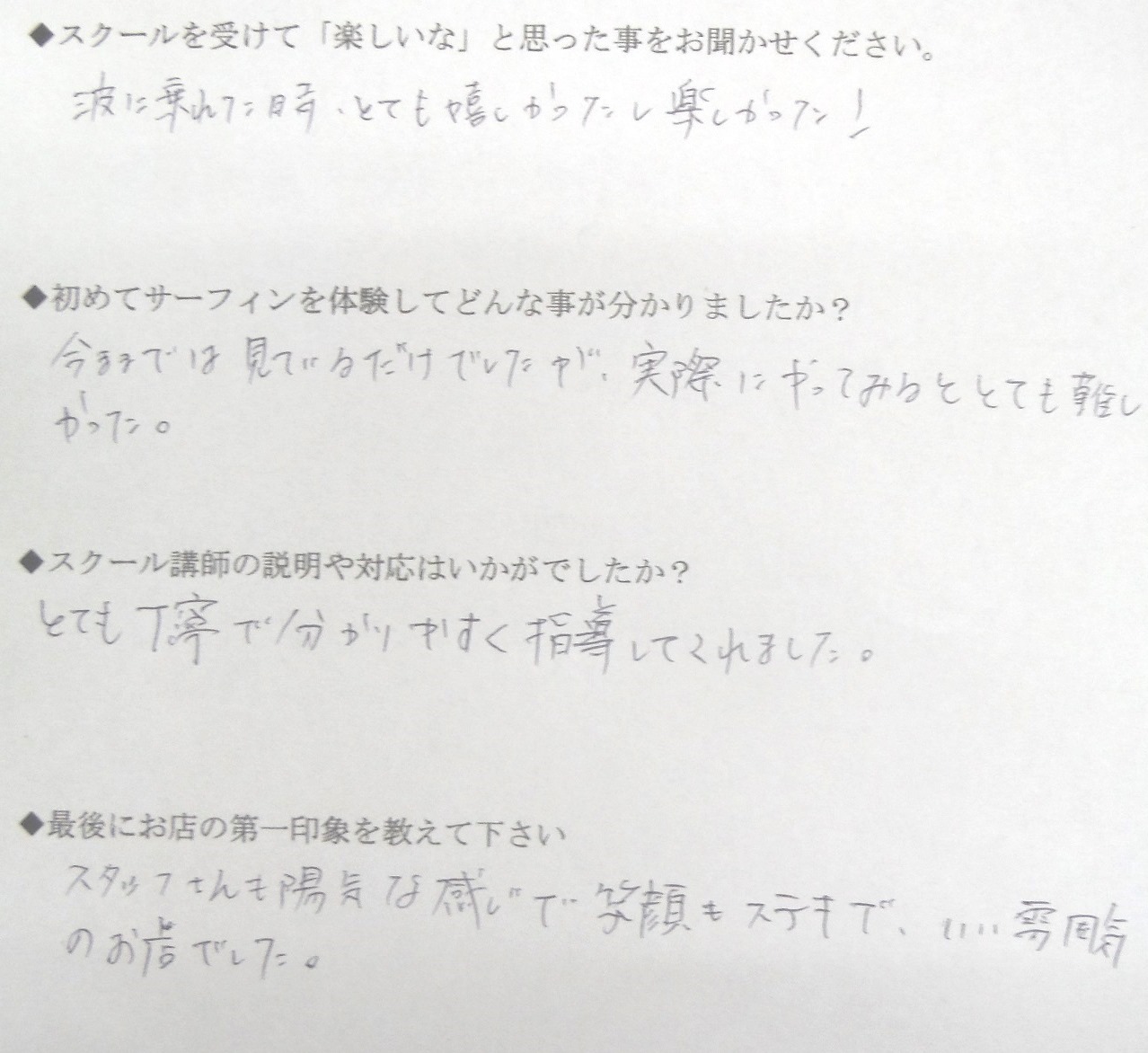 初めてサーフィンを体験してどんな事が分かりましたか?
