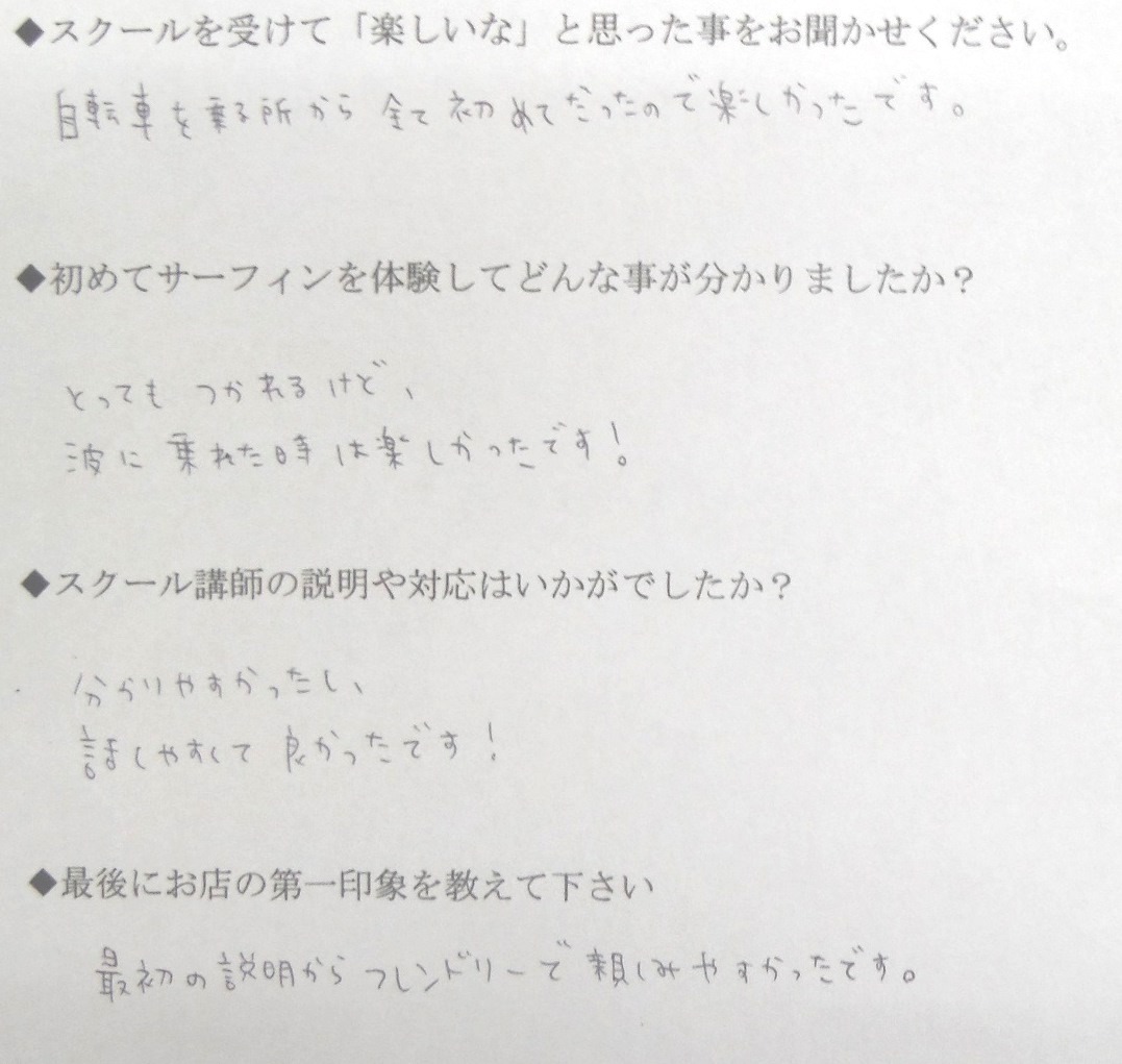 ・とってもつかれるけど、波に乗れた時は楽しかったです!