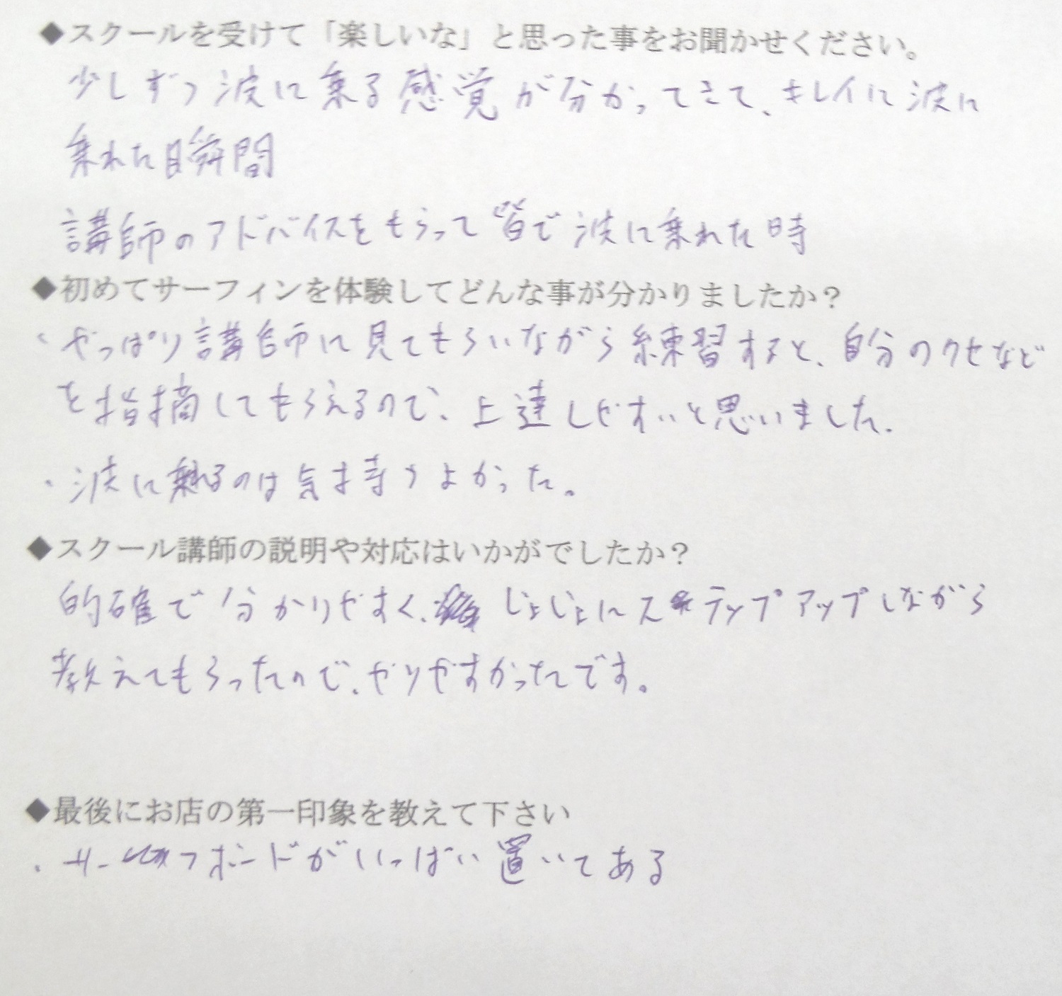 初めてサーフィンを体験してどんな事が分かりましたか?