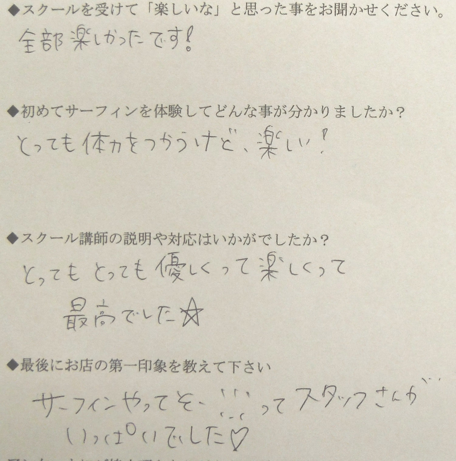 初めてサーフィンを体験してどんな事が分かりましたか?