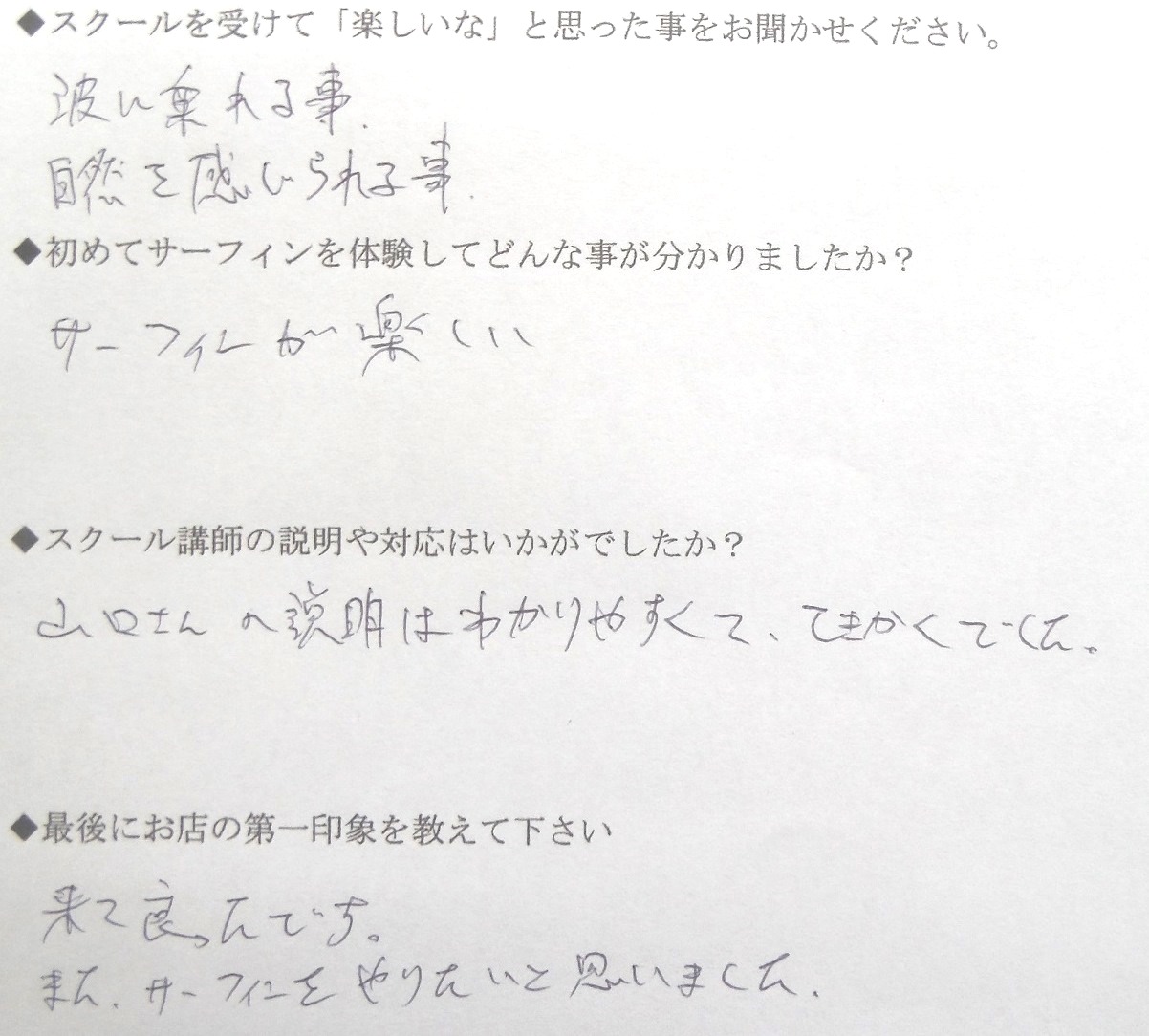 初めてサーフィンを体験してどんな事が分かりましたか?