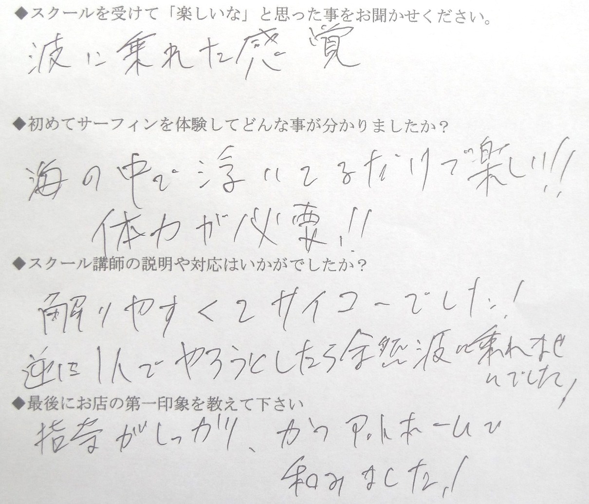 ・解りやすくてサイコーでした!逆に1人でやろうとしたら全然波に乗れませんでした!