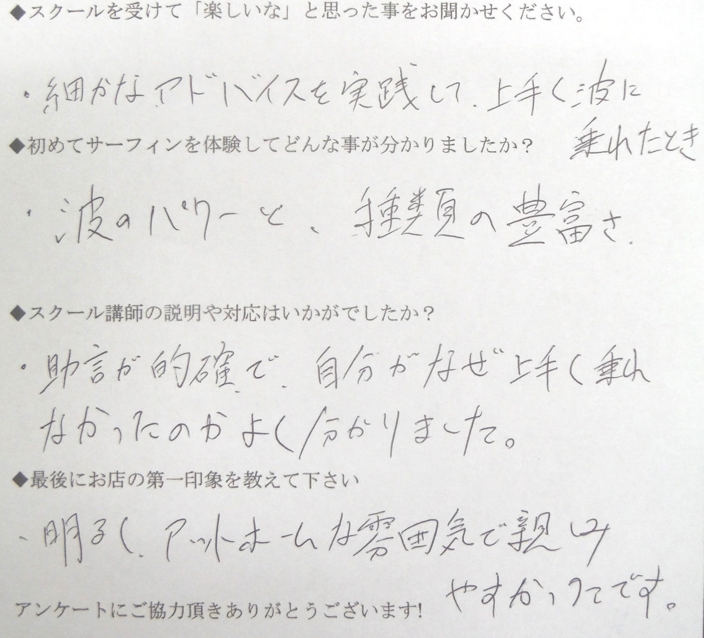 サーフィンスクール お客様の声 vol.167