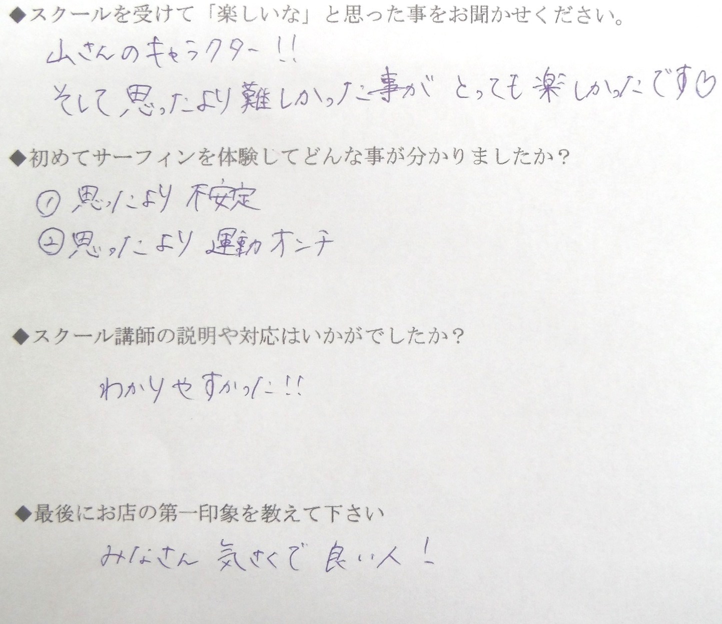 初めてサーフィンを体験してどんな事が分かりましたか?