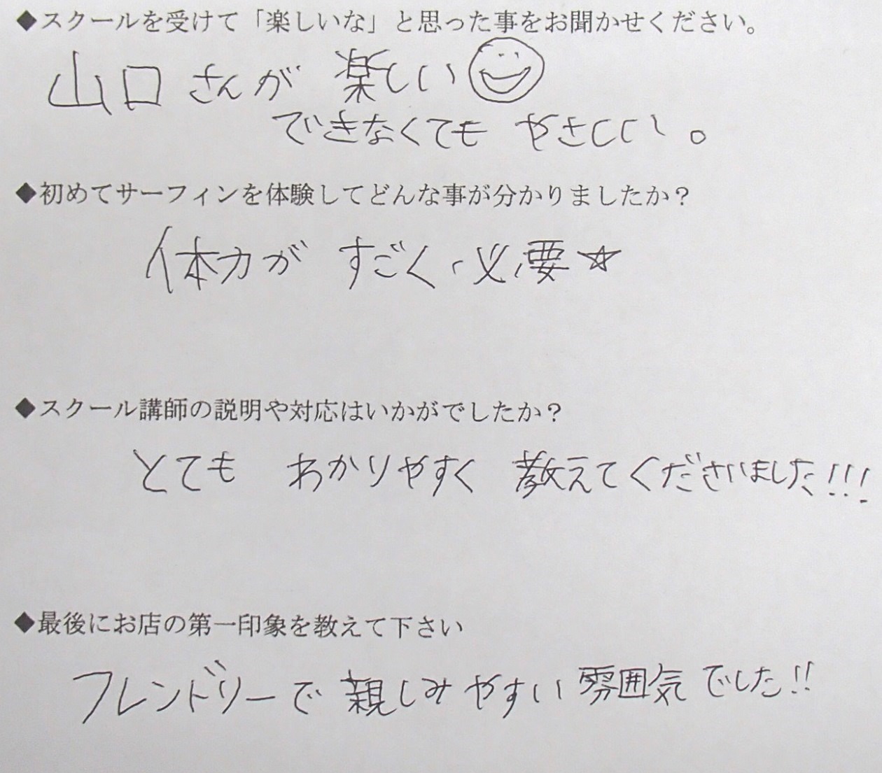 初めてサーフィンを体験してどんな事が分かりましたか?