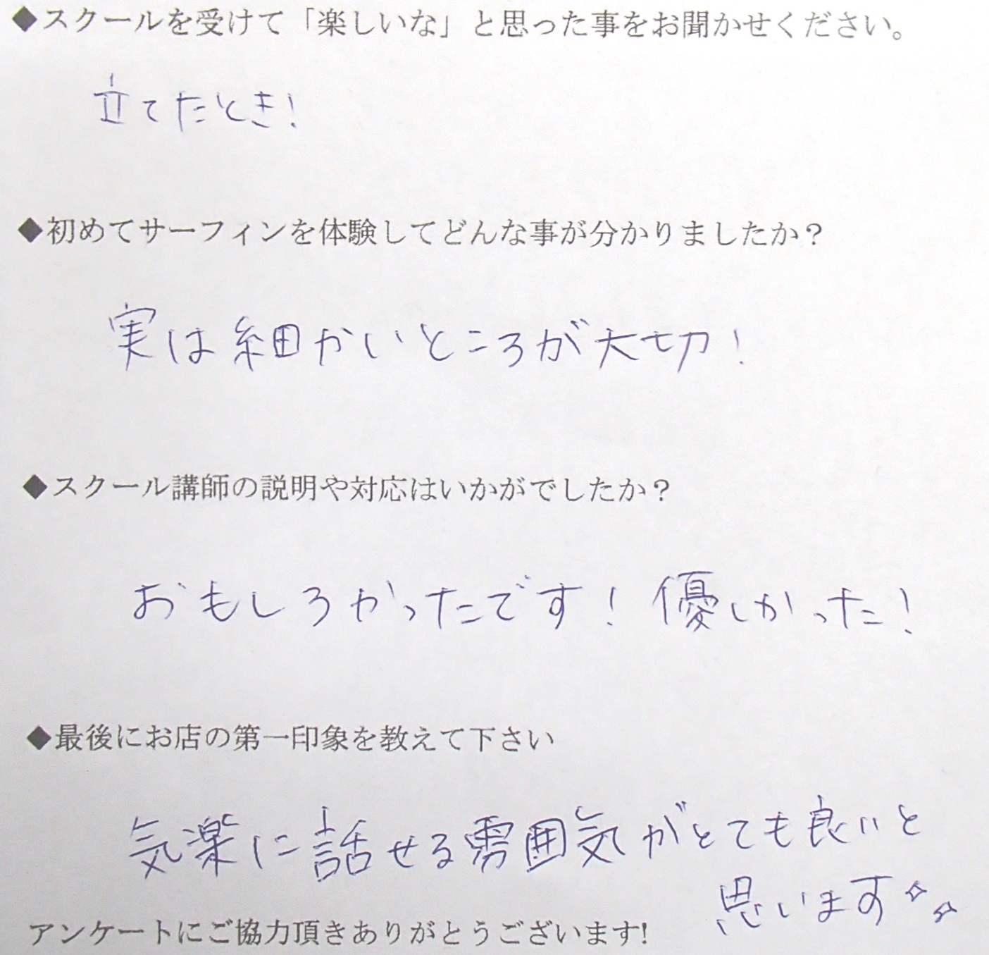初めてサーフィンを体験してどんな事が分かりましたか?