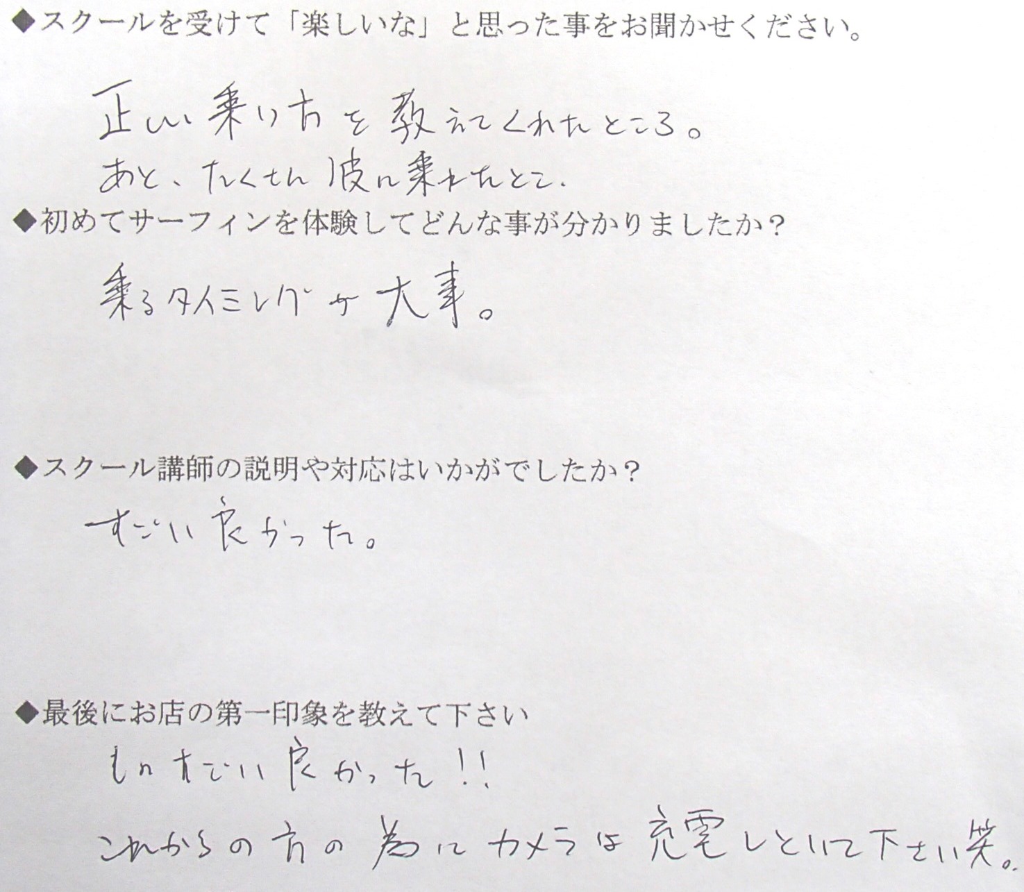 初めてサーフィンを体験してどんな事が分かりましたか?