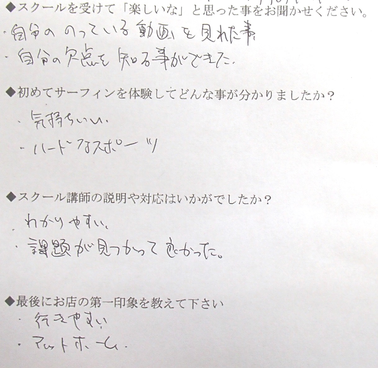 初めてサーフィンを体験してどんな事が分かりましたか?