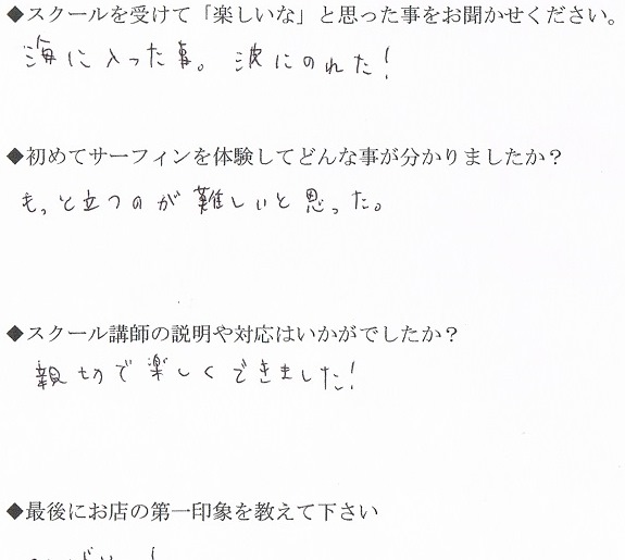 初めてサーフィンを体験してどんな事が分かりましたか?