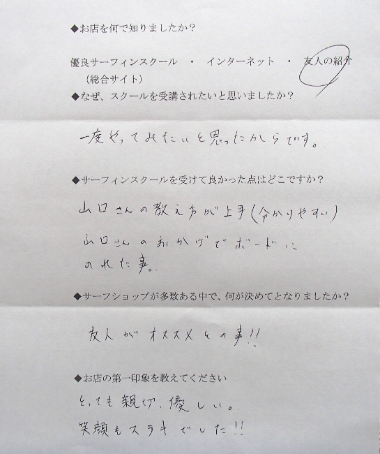 サーフィンスクール お客様の声 vol.006