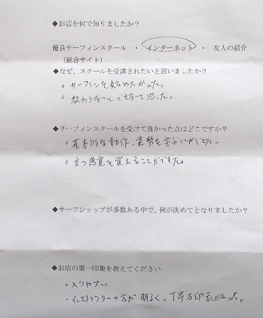 サーフィンスクール お客様の声 vol.010
